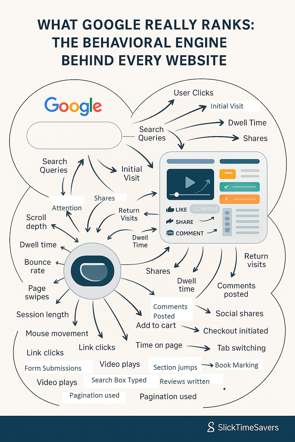 Instead of just analyzing links and on-page signals, Google’s algorithm has become a behavioral engine. It measures how real humans interact with your website: